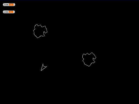 A game made for a school coding project, it is Asteroids, but endless! It has almost everything in Asteroids plus some extras. It's made in SNAP!, which is basically a Scratch clone with less features than Scratch. It's limited so the game is clunky, but it works.